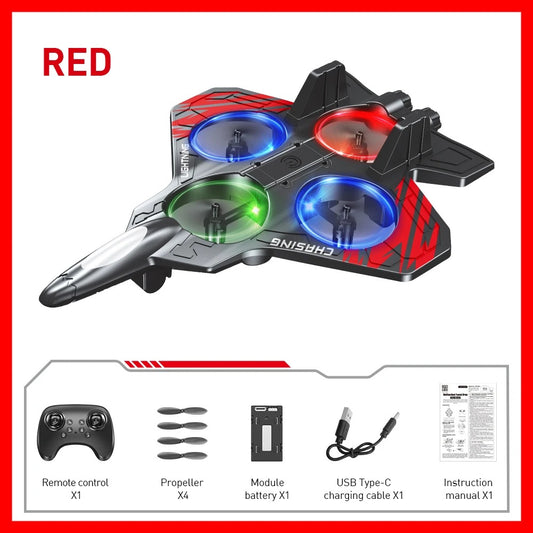 E72 High-Performance RC Foam Fighter Plane with LED Lights, 360° Stunts & Hover Model
