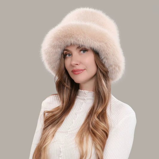 Fluffy Faux Fox Fur Bucket Hat – Women’s Winter Warm Furry Hat